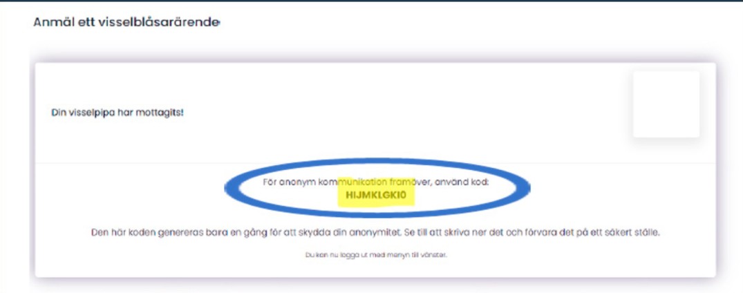 Tänk på att spara svarskoden efter att du skickat iväg ditt ärende. Denna kod ska du använda när du går in på nytt i ditt ärende och kommunicerar med handläggaren. Har du tappat bort din svarskod får du gå in och rapportera ett nytt ärende. Då kan du hänvisa till ditt gamla ärende och förklara att du tappat bort svarskoden.